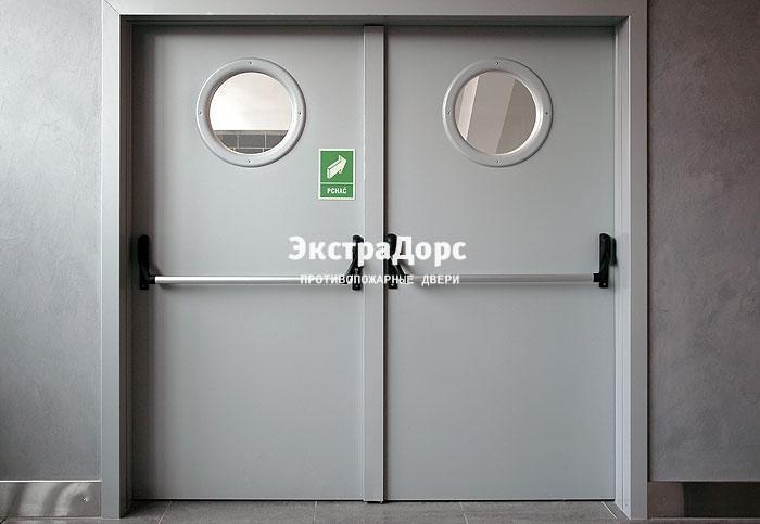 Противопожарная дверь двухстворчатая без порога с иллюминаторами в Дубне