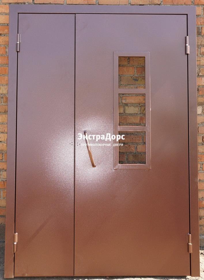 Противопожарная дверь двупольная анти-дым со стеклом, порошковая покраска в Дубне