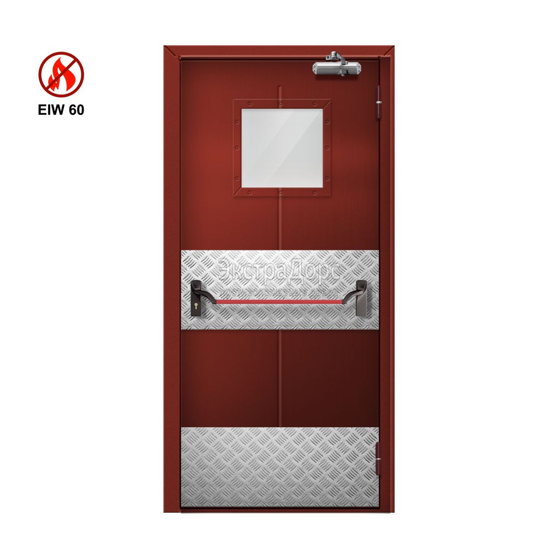 Дверь противопожарная металлическая однопольная EIW 60 ДМП-01-EIW-60 ДП58 остекленная с антипаникой в Дубне