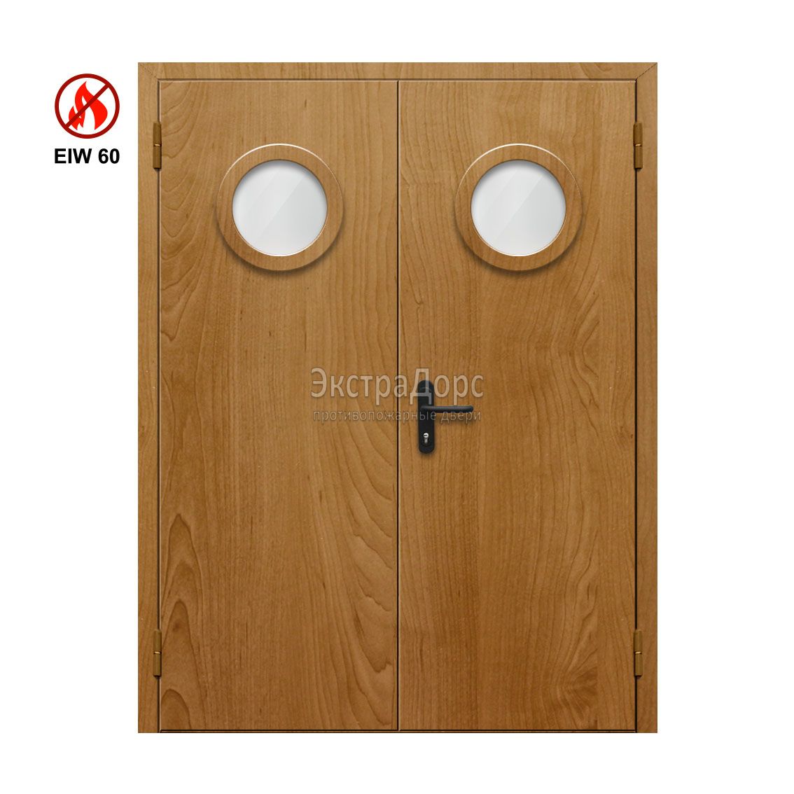 Двухстворчатая огнестойкая дверь с отделкой из МДФ EIW 60 ДОП-02-EIW-60 ДП45 двупольная остекленная в Дубне