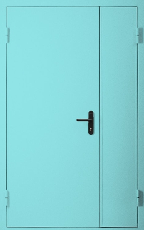 Шумоизоляционная противопожарная дверь голубого цвета полуторная – надежное решение для защиты вашего объекта от пожара. Эта противопожарная дверь сертифицирована по классу огнестойкости , что гарантирует эффективную защиту от распространения огня и дыма в течение времени эвакуации. Прочная полуторная конструкция в сочетании с полотном толщиной 50 мм и стальным листом 1,5 мм (2 шт.) создает непреодолимый барьер для огня. Дверное полотно установлено в надежную коробку, а специальный уплотнитель предотвращает проникновение дыма. Размер подходит для большинства проемов. При необходимости мы можем выполнить дверь в любом другом размере под ваш запрос. Стильная отделка и голубой (ral 5012) цвет делают дверь эстетически привлекательной. Эта противопожарная дверь – идеальное решение для любого помещения. Шумоизоляционная противопожарная дверь голубого цвета полуторная - это не просто дверь, это – гарантия безопасности, подтвержденная всеми необходимыми сертификатами. Сделайте правильный выбор в пользу безопасности! Наши специалисты помогут подобрать оптимальную комплектацию и организуют доставку с последующим монтажом в удобное для вас время.