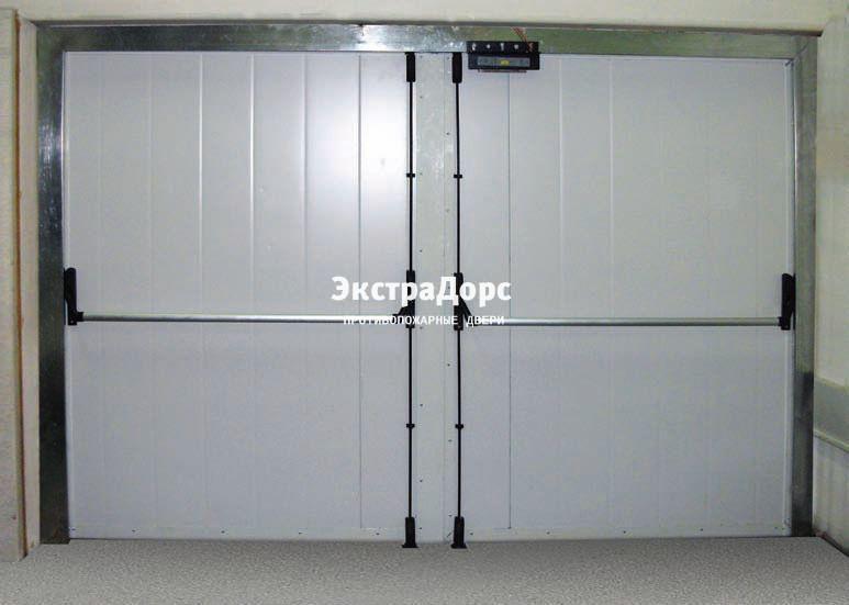 Белые противопожарные распашные ворота с антипаникой в Дубне