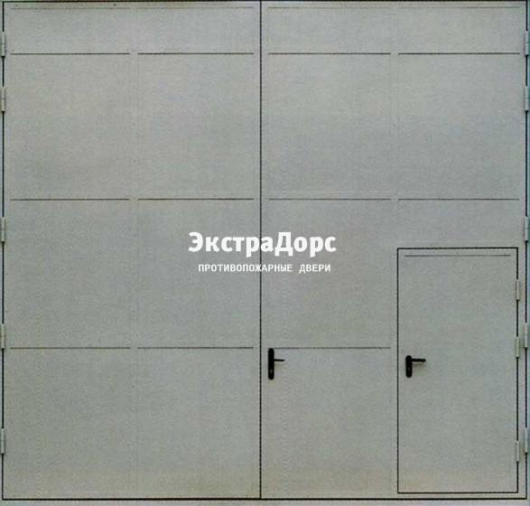 Противопожарные распашные серые ворота с калиткой в Дубне