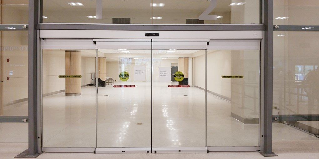Противопожарная безрамная дверь со стеклом в бизнес центр в Дубне